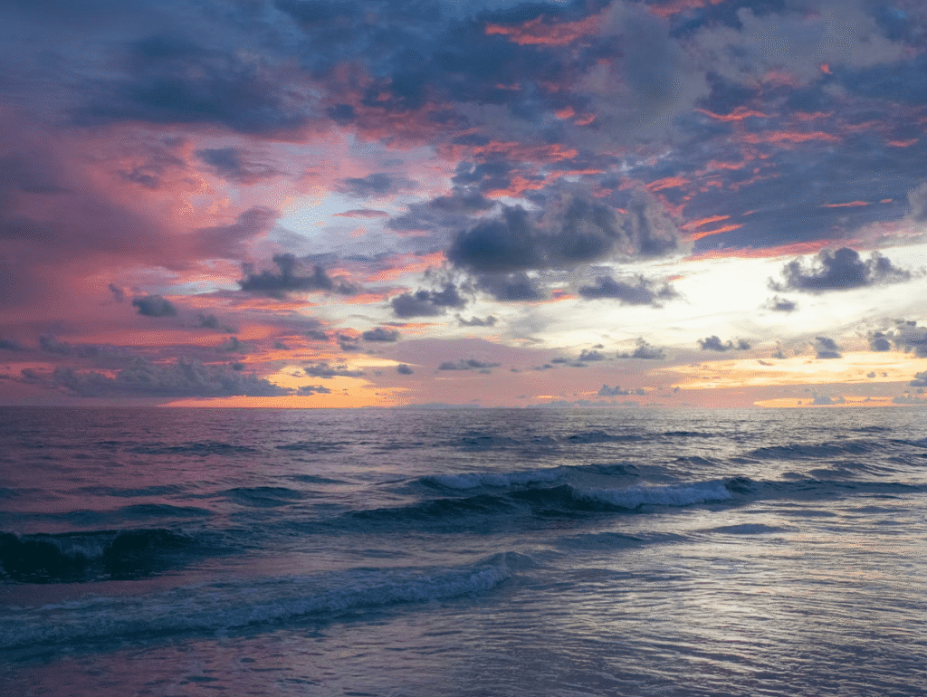 近くにはスムージーや軽食を販売する屋台もあり、冷たいドリンクを片手に海を眺めているだけで、一日の疲れがすっと消えていくようです。 夕方には太陽が傾き、海面が金色に染まる“マジックアワー”が訪れます。